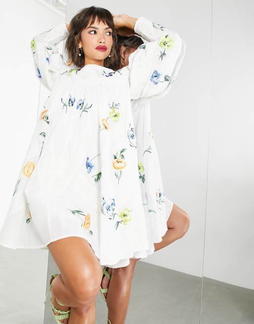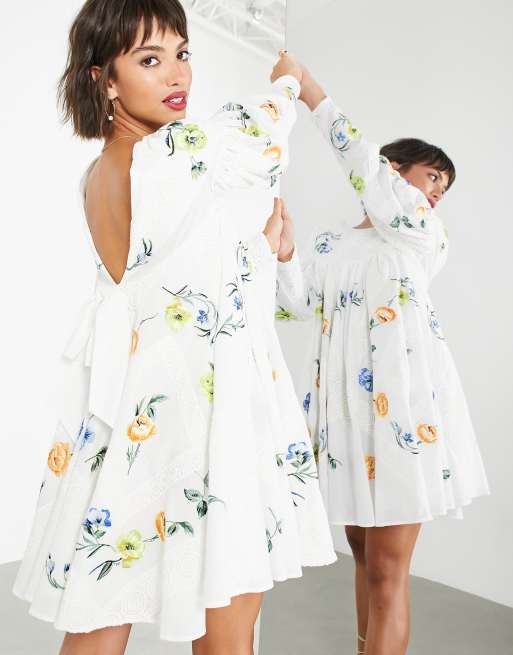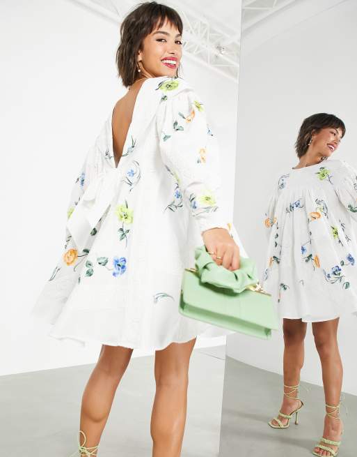 Asos Edition Bow Back Trapeze Mini Dress With Lace And Floral Embroidery Asos