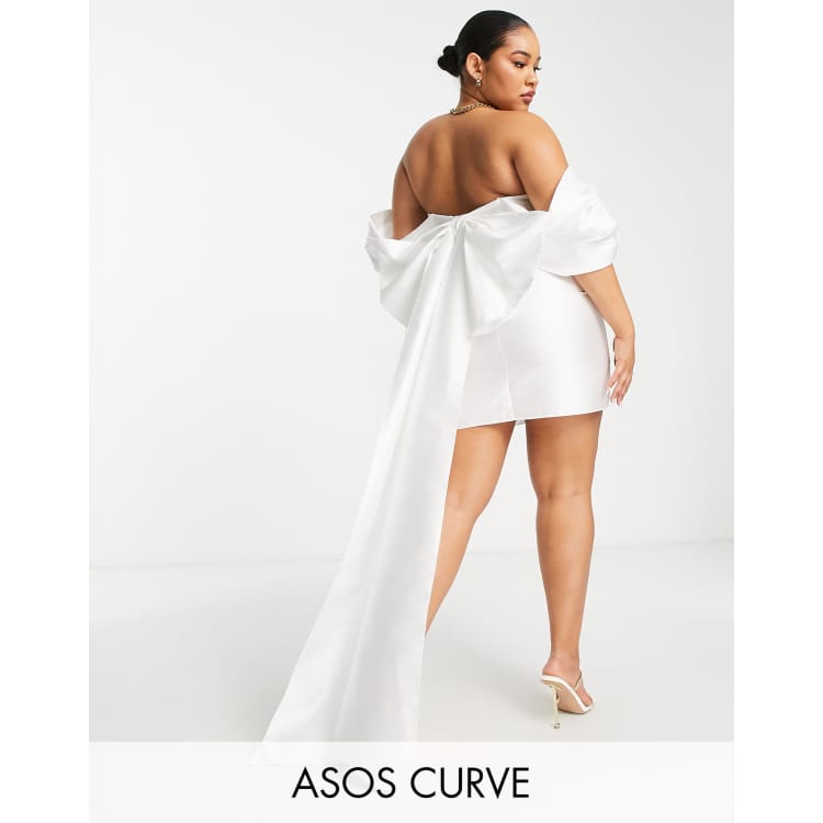 Curve Wedding satin oversized bow back mini dress in white 120. Asos Design Tall Bow Back Midi Prom Dress. ASOS ASOS DESIGN White Fallen Shoulder.