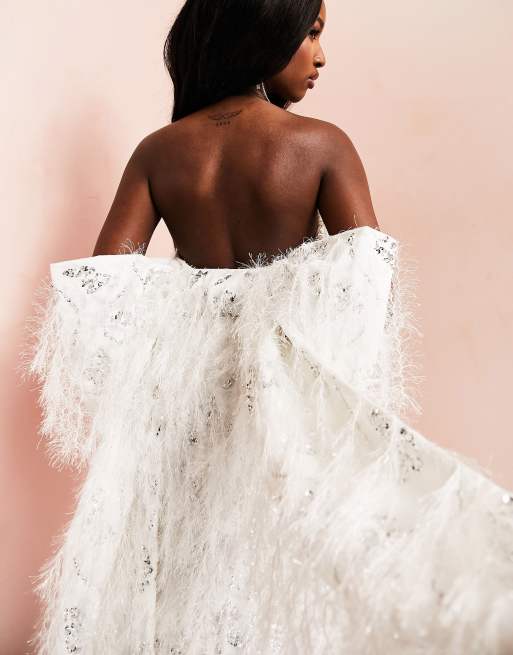 Asos Luxe Wedding All Over Feather Mini Dress With Embellishment And Oversized Bow In White Asos