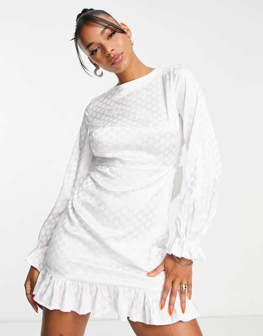 Blume Bridal Satin Spot Mini Dress With Bow Back In White Asos