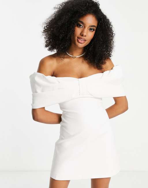 Forever New Bridal Fallen Shoulder Bow Mini Dress In Ivory Asos