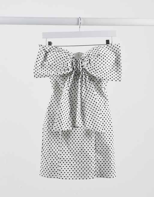 Rare London Bow Detail Mini Dress In Polka Dot Asos